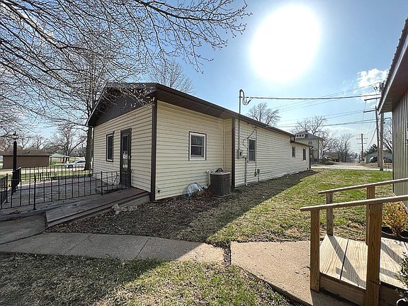 This 1,880 square foot ranch style home sits on a 0.32 acre corner lot in Sabetha, KS. Across the street from a park, near ball fields, walking trail, and downtown Sabetha, this home is close to everything. 3 bedrooms, 2 bathrooms, bonus room, laundry room, open kitchen/dining area, and large living room will welcome you home. The homeowner has made many updates over the years; foot of insulation added to attic, replacement windows in the last several years, new electrical entrance service, new interior wiring, and new 200 amp breaker box all professionally installed. Roof is approximately 10-12 years old, but has recently been repaired and inspected professionally after recent wind storm in December of 2021 and found to be in good condition.Owner will be leaving washer, dryer, range/oven, and dishwasher. Central HVAC. Gated patio off the kitchen to keep the kids or furry friends corralled. Oversized 800 square foot single car garage provides ample room in front of parking for storage, woodworking, etc. Owner will leave many lawn and garden items for the new homeowner as well.