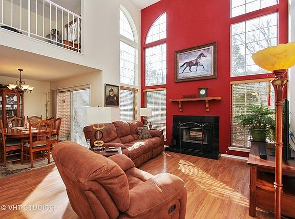 Beautiful Bradford model on cul-de-sac in Essex Village Subdivision. Bright and open floor plan. Gleaming wood laminate throughout first floor, stainless steel appliances, first floor laundry and powder room. Vaulted ceilings with soaring windows in living room with cozy wood burning fireplace. Dining room with slider to patio that overlooks wooded open area and walking trails. Large master with vaulted ceiling, his and her closets, window seat and private master bath. Second bedroom with separate bath. Second floor loft opens to main level, that can be used as office, playroom, or converted to a third bedroom. Extra deep garage provides additional storage space. Outdoor pool, clubhouse, walking trails, and parks. Top rated Crystal Lake schools, Randall Rd shopping and restaurants. Freshly painted, Newer Furnace 2010, Water Heater and AC 2011. Perfect starter home or downsizing, a MUST-SEE!