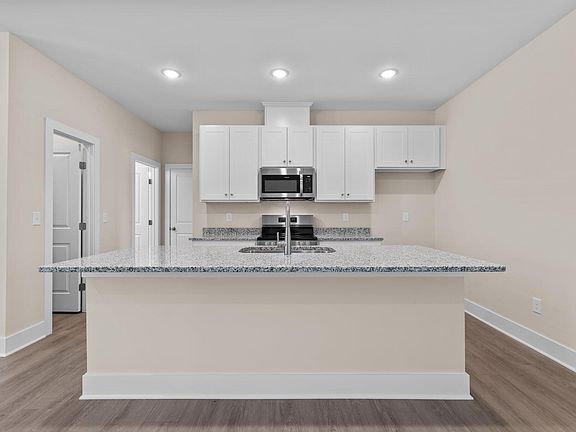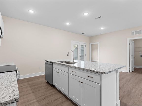 Custom Built True Ranch Plan by Local Builder Hornet Homes! Situated on almost 1/2 Acre Lot with NO HOA! Luxury HWD Style Flooring Through Entire Home! Kitchen w/Custom White Painted Cabinets, Center Island w/Breakfast Bar & Single Bowl SS Sink, SS Appliances & Walk in Pantry! Open to the Family Dining w/Access to Rear Patio Overlooking Private Backyard! Owner's Suite w/Tray Ceiling, Ceiling Fan & Spacious WIC! Owner's Bath: Dual Vanity w/Granite Countertop & Rectangular Sinks & White Subway Tile Surround Shower! Open Family Room w/HWD Style Flooring & Ceiling Fan w/Light! Spacious Secondary Bedrooms!