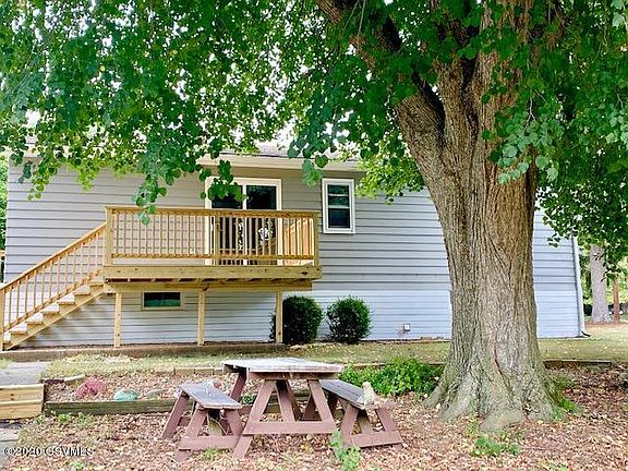 Newly updated throughout! Pretty white cabinetry in the kitchen with eat-in dining and an open concept to the spacious living room. Sliding doors lead to a new deck plus lower level wood decking for outdoor kickin' back. Nice new, new, new full bath too. Lots of beautiful hardwood flooring that shines and makes you smile!!! Open basement rec room is heated with finished walls and ceiling. Includes a bar, laundry room, sink. 2 sheds, and one that has electricity and is perfect for a workshop or whatever your heart desires! Long yard stretches beyond there. Off street parking and a side entrance to the kitchen. Ready to go ~ this little find could be yours!