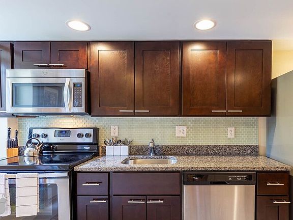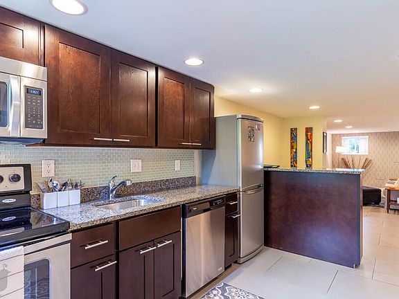 This large 1 bedroom, 1 bathroom garden level apartment has been updated with modern touches that make it an ideal apartment. Inside, you'll find a large open living space with recessed lighting and tiled floors. The spacious kitchen features stainless steel appliances, lovely backsplash, granite countertops, and plenty of cabinet space. A breakfast bar separates the kitchen and living areas. Off the living area, the large, well-lit bedroom has great closet space, and the full bath is recently updated and features a large walk-in shower. The combo washer/dryer rounds out this perfect nest!