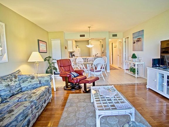 Spacious end unit on the fifth hole! This well kept condo comes fully furnished and rental ready for you to enjoy the white sandy beaches and lush tropical pools that Edgewater Resort is known for. Oversized window in the living room showcases sweeping views of the golf course and ponds around this beautiful condo. Large rooms and plenty of closet space in this well laid out condo. New wood plank tile in the living room and dining room is warm and inviting. Hot water heater is 2 months old and A/C unit was replaced 3 and a half years ago. Close to shopping, dining and the areas entertainment venues. On-site restaurant, tennis courts, golf, pro shop makes this resort a true tropical, gulf front getaway.