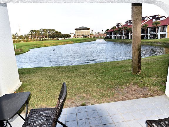 You just found your own piece of paradise! This beautiful ground floor Villa is near the 5th hole of Edgewater's Golf Course. The private, covered patio features a freshwater pond view and coastal breezes. Offered fully furnished, it is ready to earn you rental income. Inside you will find Spacious Rooms, Tile, durable LVT Flooring. Carpet being replaced! Nice furnishings and decor. The Villa's heated pool is steps away. Walk to the Sky Bridge or use the complimentary Club Cart to get to the Beachside Amenities: Tropical Lagoon Pool, Heated Pools, Hot Tubs, Splash Pad, Restaurant, Bar, Market, Pizza Shop, Activities Room, Kids Adventure Club, Tiki Airbrush. The Villas surround The Club where Owners play unlimited Golf, Basketball, Tennis and Shuffleboard. Fitness Center, Salon Services.