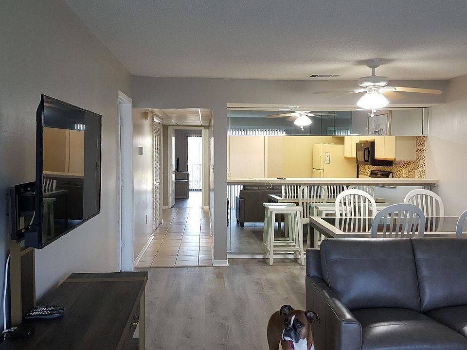 A walk to the beach- this condo has been updated. New couch, new vinyl flowing, newly painted, new tv, new sliding door glass windows, new beds new dining table. Most of all, this community offers all the fun a vacation getaway offers. Play at the beach, pools, golf, eat at one of the finest dining restaurants on the beach exclusive only to owners and their guest. Shops, music and dancing, tennis, walking. the resort is yours tp enjoy!!! Great rental unit!