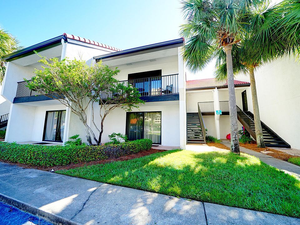 You will feel right at home in this ground level condo. Complete remodel and professionally decorated. Open floor plan with amazing views of Golf Course and lagoon with water feature. Kitchen boasts beautiful custom cabinets, granite countertops, imported italian tile, stainless steel appliances and pantry. Tongue and grove ceiling in dining and living room area. Custom blackout drapes in all rooms. Sliding glass door leading to balcony off master bedroom. Master bath has a gorgeous custom shower with imported tile, double vanity and walk in closet. King size bed in Master and 2 queen size beds in guest room. Short walk or complimentary tram service to beach, shopping and restaurants. Edgewater offers 11 pools, a lagoon pool with waterfall, 4 hot tubs, kids splash pad, 10 tennis courts,