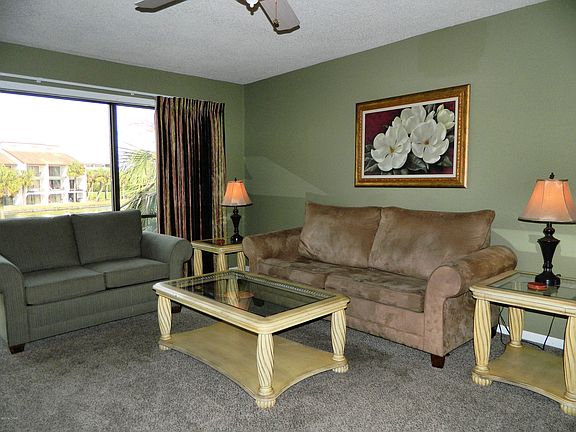 Extra large 2nd Floor End Unit! This spacious Golf Villa is perfectly situated on the gorgeous 8th Hole at with a peek of the beach. Enjoy the golf action and Gulf breezes on your private covered balcony. Spacious Master with bath, walk-in closet. Fully furnished & rental ready. Just steps to a Heated Pool and the beachfront amenities are a short walk or tram ride away. Tropical Pools, Hot Tubs, Sun Decks, Beach Access. Restaurant, Room Service, Poolside Bar. Market serves Starbucks and Ice Cream. Everyone loves the Pizza Shop. Kids Club features Special Events, Splash Pad, Activities. At The Club owners play unlimited Golf, Basketball, Tennis and Shuffleboard. Enjoy the Fitness Center, Salon and Spa Services. Manned, Gated Entrances, 24-hr Security. Owners can bring their sweet pet