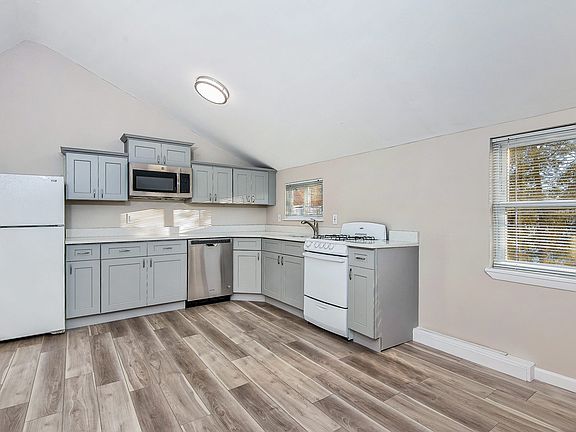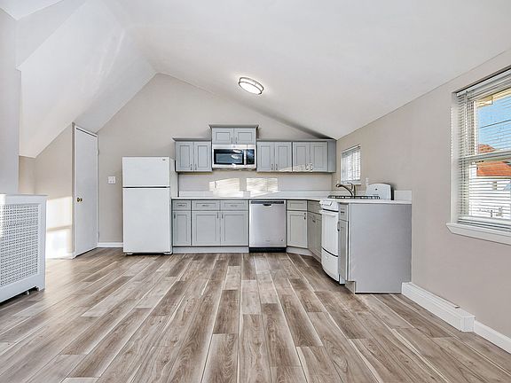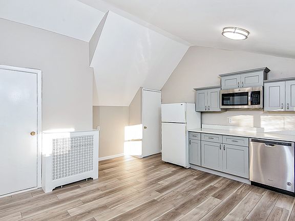 This very sunny 3rd floor walk-up apartment has a new eat-in kitchen, with new cabinetry, a beautiful white quartz countertop and undermount stainless steel sink, a new stainless steel dishwasher, microwave and a new wood composite floor throughout. The living/dining room is 28 feet by 13 feet and has four windows and has a flexible layout plan. There is a washer/dryer for your added convenience, and a new stainless steel gas range for your culinary skills! The bedroom is 13 feet by 10 feet and has a closet that includes deep shelves. A large finished room can be used as your office space, or for storage, or perhaps more closet space. Additionally, there is a small storage area at the top of the entry stairs into the apartment. Two cats/small dogs under 30 pounds permitted with prior interview of pets. This home is on a cul-de-sac and there are multiple free parking spaces on the street directly across from the house. This location is convenient to parkways, bus transportation, shops, restaurants, DeCicco's market, and to the train station. Additional Information: Initial Lease Term: 12 Months, with a Renewal Option. 2025-08-27