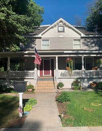 This 2 1/2 story home exudes the charm and character of the 1915's yet possesses all the modern amenities. On the main level is a large kitchen which features a center island, numerous cabinets, cozy eating area and stainless steel appliances. The laundry room and half-bath are just off of the kitchen. The dining room has natural cherry wood flooring and over head are large tin ceiling tiles, just two of the beautiful features in this room. Also on the main floor is a stunning formal living room and cozy TV room which leads out to a covered patio. Retreat to the master bedroom and relax beside the fireplace in a claw foot tub. On the second floor is an additional bedroom, 3/4 bath, extra closets, a cozy office space with access to a second story patio. The third story contains a bonus room with multiple uses. In the basement is a family room with new flooring, 2 large bedrooms, a full bath and storage room. The home has been beautifully landscaped with 2 patios and a wrap around front porch to enjoy time outdoors. Detached 2-car garage along with a new 28x30 ft. 3-car garage and loft offers additional space for family and guests.