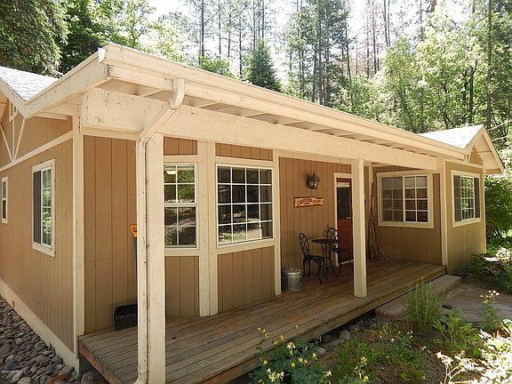 This great getaway tucked among the beautiful Pines in Oak Creek Canyon with the creek just behind the home. It is surrounded by beautiful gardens and mature landscaping. The cottage offers 1174 sq ft of living space and includes 2 beds and 2 full baths. Inside has been beautifully updated with stone counter tops, new cabinetry throughout, wood floors and a great wood burning stone fireplace for those cool nights. Outback the deck is surrounded by tall trees that offer plenty of shade and a path that leads to the creek.