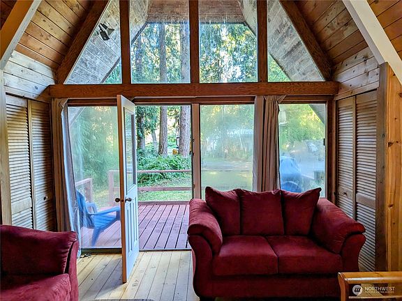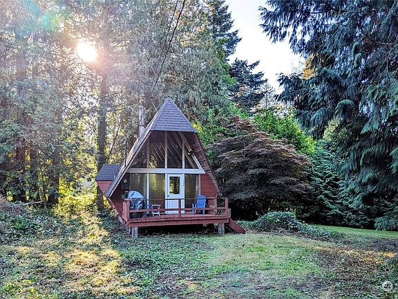 Perfect time of year to curl up in front of the wood-burning fireplace in this unique A-frame cabin located on S Beach Rd. Extremely private setting on over 1/4 acre with home set back over 150' from the main road which in turn backs onto large acreage. At only half a mile to South Beach, this understated gem is the best deal in Point Roberts.