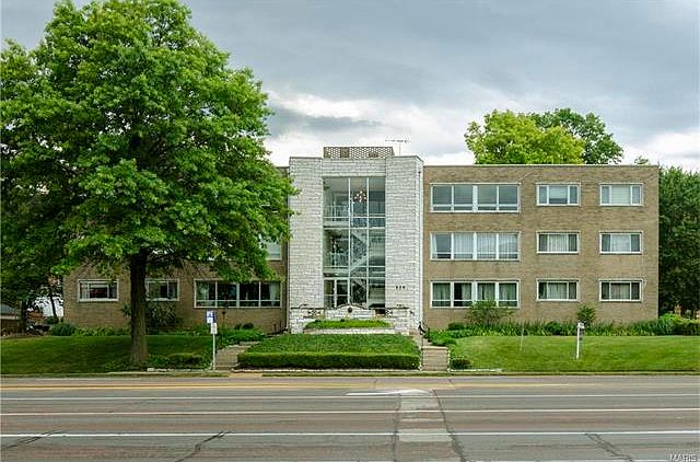 This quiet 2 bedroom, 2 full bath, rear facing condo offers nearly 1,600 SqFt of living space in a secure, mid-century modern elevator building situated in the heart of Clayton. Just a short stroll to shopping, dining and cafe life in downtown Clayton. Situated on the 3rd floor, the immediate impression upon entry is an open, inviting living room with expansive crown molding & newer windows that infuse the entire condo in natural light. The equally impressive dining room opens to the well proportioned eat-in kitchen. Ample counter space & cabinetry with 12" ceramic tile flooring. The living space is conducive to easy, open living & entertaining. Master bedroom & bathroom suite offers dual closets along with a well sized second bedroom and 2nd full bathroom to make this condo appealing. Pet friendly with 2 assigned space in the garage and guest parking in rear. Sought after Clayton schools are second to none, only 3 blocks to Meramec Elementary. Open daily by appointment. Don''t delay!