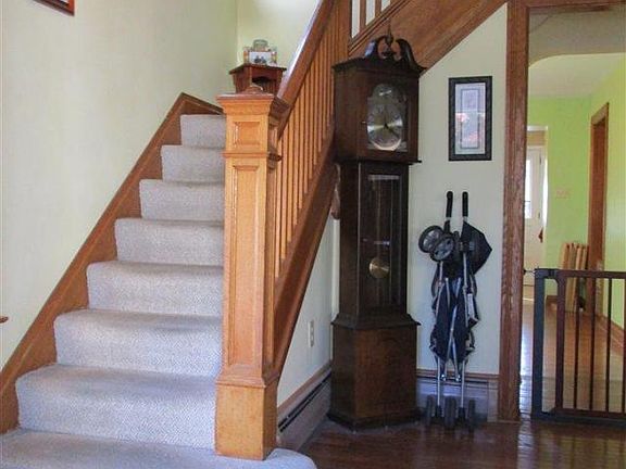 Great oak woodwork in this charming home with H/W floors in the LR/DR & most BR's. Large FR in the lower level plus 2 storage rooms & utility/ laundry room. Extra insulation added to attic space, 2 zone gas hot water baseboard heat. 200 AMP electric. A sweet white picket fenced yard with large deck & A/G pool, basketball area/off street parking & a 2 car garage with gym/workshop area. Front porch for your rocking chairs & minutes to I83/Rt30.