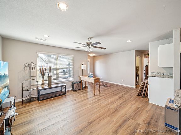 Easy maintenance home located in the heart of Skiatook. This cute home was built in 2017, has 3 bedrooms, 2 baths, 2 car attached garage, full privacy fence, storm shelter, carpeted bedrooms, stained concrete floors, granite counter tops, separate laundry room, and open kitchen, living and dining. Priced to sell! Call or text today for a private showing.