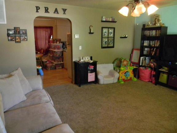 Nice 2 bedroom 1 bath home. New carpeting in living room, utility room, large backyard, 1 car attached garage. New roof just installed.