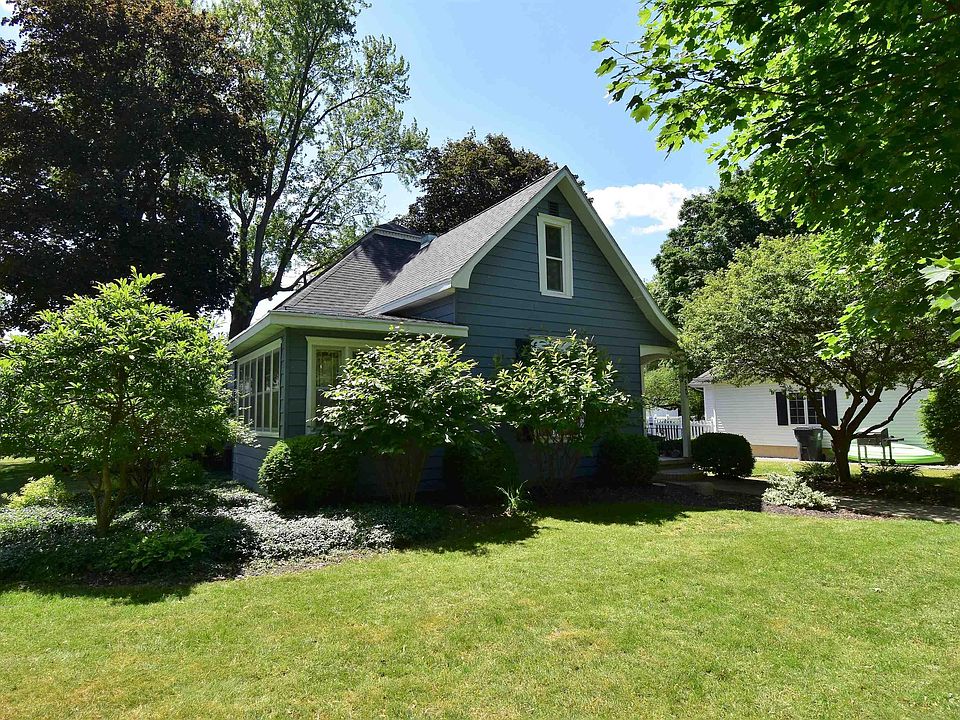 Ready to be charmed by high ceilings, original ornate woodwork, and hardwood floors! This home has a perfect mix of old and new! The kitchen has recently been updated with stainless steel appliances, butcher block counter tops, and a tile backsplash. The main floor includes a spacious master bedroom en-suite with plenty of closet space, a large bathroom, and a bay window for natural light. If organizing is your thing, you'll love the laundry room with a hanging rack, storage for multiple laundry baskets, and a sink. There is also a second main floor bedroom with a custom built desk, walk-in closet, and a half bath. The second floor has 3 bedrooms, gathering room, and a bathroom. If you need more room for storage there is a partial basement and two car detached garage. All of this is located on a double corner lot near the school. Recent upgrades include roof, central air, 200 amp electrical, and kitchen remodel. Call today to schedule your showing!