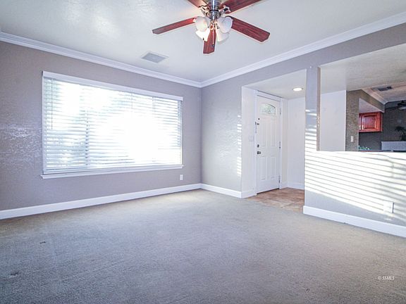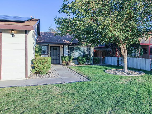2022 installed SOLAR & updated 3 bed/1.75 bath home in desirable neighborhood. Walking distance to an elementary school, park, shopping & new restaurants. Home has inviting front ambience with green lawn, tree & bushes. On entering, carpeted living room by the front entry for entertaining guests. Kitchen has copious space, solid surface countertops, stainless steel appliances, tile flooring & a huge breakfast bar. Adjacent dining area is convenient for serving meals to family and guests. Family room has vaulted ceilings, a delightful brick fireplace & back patio access. Large Primary Bedroom has brand new carpeting, elegant crown molding, ensuite bathroom with luxurious shower, two closets & lighted ceiling fans. Two guest bedrooms have carpeting, lighted ceiling fans & generous closet space. In the back, enjoy outside activities from your partially covered & railed porch or frolic in the green spaces of your back yard. Property has RV parking & large storage shed " perfect for a family on the go. Home has A/C & less than 3 years old evaporative cooler keep house cool in the summer heat. Home is professionally cleaned. Come see this affordable "gem" on Silver Ridge.