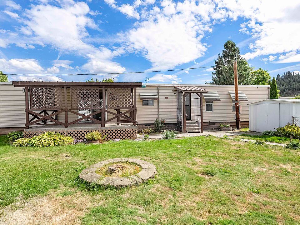 Incredibly clean 1983 built single wide 2 bedroom 2 bathroom on a huge 1/4 lot. The master bedroom has its own master bath, 2 new toilets, kitchen has double sink, refrigerator, stove and dishwasher. Washer and dryer included, new blinds, fresh carpets, newer A/C wall unit. Fenced backyard, big covered deck off of the family room slider. Sprinkler system, big 18x22 2 car shop. Also a newer hot water tank. Clean storage shed in the backyard. Very well cared for home, don't miss it.