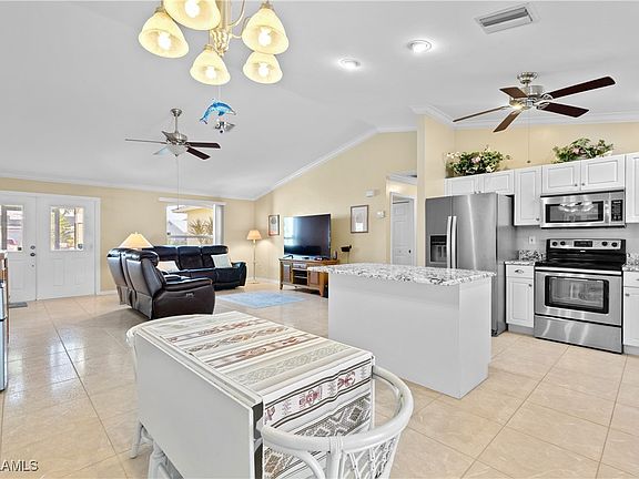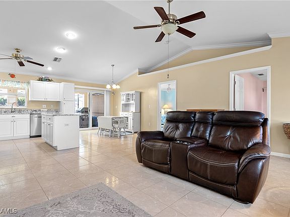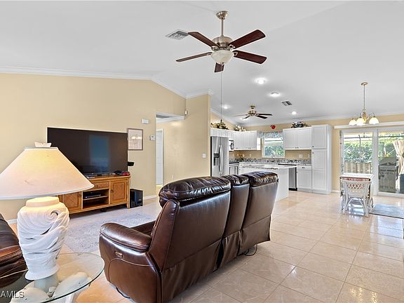 The vinyl privacy fence encloses the fruit tree-filled backyard, creating a private tropical retreat ideal for relaxation or entertaining. Best of all, this home is not in a flood zone, eliminating the need for flood insurance. Offering both safety and convenience in a sought-after Cape Coral location, this property is truly move-in ready. Schedule your private showing today!