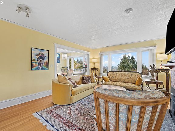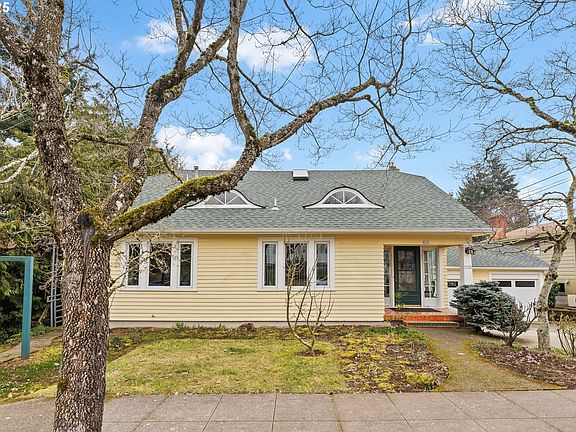 OPEN HOUSE Sunday 11 - 1 pm. Everyone Welcome. Step into this warm and welcoming home with an absolutely gorgeous picture-perfect view of Mt Hood and the entire valley. Stunning! This exquisite bungalow has an open and spacious floor plan. Large picture windows, hardwoods, tiled entry, French doors, and high ceilings with an open layout. 2-car garage. New roof. Finished basement with an outside entry has great potential for ADU. The backyard is absolutely dreamy. Lush trees, water pond and designed terraces. You have to walk through to enjoy this true gem. Located in a lovely secluded location close to Mt Tabor Park and easy access to Montavilla.