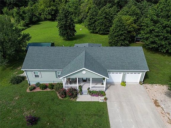 Green acres is the place to be! Are you looking for privacy in the country but not too far from town this is the perfect place to call home, this Ranch style home is only six years old was custom built for the current owner and has been very well maintained, the main level features nice open living room that leads into the kitchen and dining area with access to the two car oversized garage, down the hall you will find a full bath and laundry room with a master suite and two other large bedrooms, the lower level has been finished leaving just carpet and trim to complete, the space provides additional living room, bedroom and full bath and plenty of room for storage, walk out to the patio and take in the view of this sprawling 10.66 acres, there are two outbuildings one being used as a wood working shop and the other for storage, the land is surrounded by open country with plenty of timber, full of mature trees offering great hunting for deer and turkey and space to enjoy your ATV, when it’s time to relax enjoy your evening from one of the two covered porches take in the views and peacefulness the country has to offer.