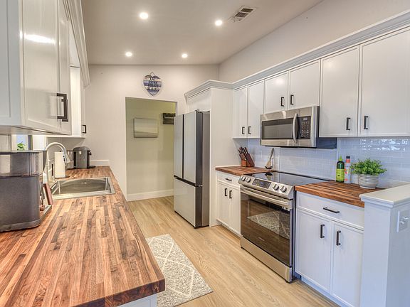 Welcome to your dream home, where elegance meets comfort. This lovely residence is nestled among large oak trees, providing a natural canopy that keeps the front of the house beautifully shaded. This 3/2 immaculate home offers an ideal layout w/ 1,192 living square feet & a screened in pool. The heart of the home is its spacious kitchen which features modern upgrades w/ beautiful kitchen cabinets & stylish butcher block countertops. The spacious bright master suite features a walk in closet & stand up shower. With no HOA fees, this property ensures cost-effective living without compromising on quality or amenities. Whether you are lounging by the pool or enjoying the the comfort of the indoors, this property offers a lifestyle of relaxation & convenience. New Water Heater 2025-Roof 2021