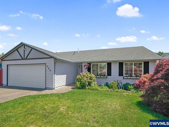 Charming 4 bd, 2 bth home on lovely landscaped lot. Oversized 2-car garage. Located in quiet cul-de-sac near Dallas City & Kingsborough Park. Vaulted ceiling, gas fireplace. Updated kitchen. Primary suite w/new vanity, double closets & bdrm vanity. Spacious yet cozy layout. Fenced, private backyard w/mature fruit trees, bushes & butterfly/hummingbird-friendly flowers. Matching garden shed. Recent updates include: paint, furnace/A/C, water heater & more. Don't miss the opportunity to make this your new home!
