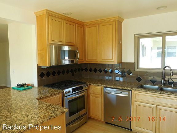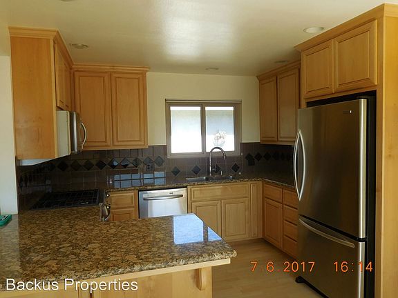 One level duplex on quiet cul-de-sac - - Rent: $2,300.00 electronic transfer only Deposit: $3,450.00 must be paid in full at lease signing Lease: one year Non-refundable Application fee: $45.00 per adult Avail: Now HUD: No Size: two + bedrooms, two bath, approximately 1650 sq. ft. Special terms: one small pet possible with additional deposits and references. A picture of pet must accompany any application. Proof of neutering and shots to be provided. No smoking allowed inside the house or on property. Proof of tenant insurance, with Backus Properties listed as additional insured, is required prior to move in. Appliances: gas stove, refrigerator, dishwasher, microwave, disposal, wash/dryer (owner does not maintain)(gas and electric). Alarm possible at tenant expense. Description: Quiet cul- de- sac, private one level duplex. Private entry courtyard with brick pavers, living room with gas log fireplace, large kitchen with wood type floors, eating bar, dining area, granite counters, stainless steel appliances. Glass doors to backyard patio. Separate laundry room with pantry and storage. Off the living room is the third bedroom space (vaulted ceiling!) is currently used as a family room but could be office or bedroom. It does not have a closet. Hall bath has a tub/shower and master bath is stall shower. Large master bedroom. Fenced backyard with wood deck, lawn, lemon trees, roses, raised beds for garden and lots of flowers. Double car garage has an opener, workbench and extra storage shelves. Tenant paid utilities: electricity, gas, and garbage Owner paid utilities: water and sewer Directions: cross street is San Blanco off Pico Blanco off Blanco (RLNE4629978)
