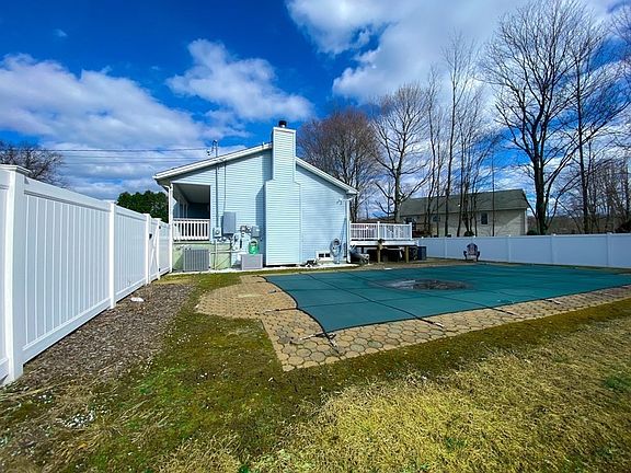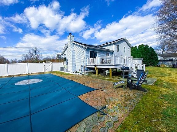 HOME SWEET HOME! Come out to see this move-in ready home across from the beautiful School Street Park Neighborhood in Agawam MA. Nothing to do here as most updates have been done. Enter through the front open-porch door and into the bright and naturally lit Great Room, where the kitchen dining and living area mix very nicely. The space is further heightened by the cathedral ceilings and a skylight of the area. Notice the beautiful hardwood floors, fireplace with wood stove, and kitchen with white cabinets and center Island all topped with dark granite counters. If you want, you can dine on the new deck or enjoy cookouts by the in-ground pool too. Head upstairs to three perfectly sized rms sharing a large bath.The main bedroom is large, bright and also has cathedral ceilings. Move back downstairs to the family room that has a cozy pellet stove and offers access to backyard or garage. Basement has an office, laundry rm, and extra storage. Get out to see this one as it will go fast!