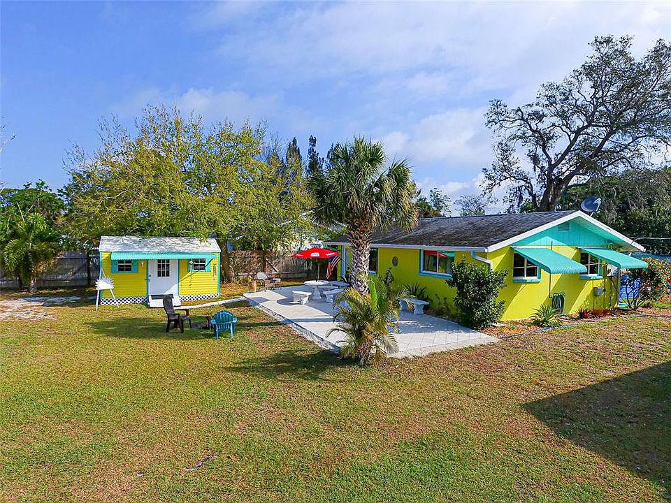 THE BEACH LIFE IS CALLING YOU! YES...WALK TO NOKOMIS BEACH from your own home! Imagine taking morning strolls to the Gulf of Mexico, less than 1 mile away, or take in sunsets at the Drum Circle events, then dine at our locally owned waterfront restaurants, Pelican Alley or Pop's! This is the FLORIDA FUN you've been dreaming about! There's also a NOKOMIS BOAT RAMP, if you're a boater! This Non-deed restricted beach community allows you to park your boat or RV in the backyard - no storage or marine fee needed here! This FRESHLY remodeled, move-in ready 2 bedroom, 1 bath cottage has a trendy, open air modern concept. Beautiful maintenance-free epoxy floors throughout, newly remodeled kitchen with counter bar, all new stainless appliances, and new bathroom. NEW IMPACT WINDOWS, SLIDER AND ALL DOORS (Complete impact coverage), custom roller shades installed 2020, new hot water heater 2021, new electric panel and wiring 2020, repiped 2020, A/C vents reducted 2020, A/C 2017 and Roof 2012. This unique property feels like a tropical retreat! The HUGE LOT (150' x 111'), almost fully fenced, measures .38 acres and is tucked away from the main road. There's a bonus STUDIO / SHE-SHED 10' x16' with conveying cozy loft bed, complete with A/C and electric. The NEWLY installed steel garage (240 sqft) also has a carport and offers tons of storage. The private backyard features a covered screen lanai 15' x 10' and is surrounded by mature trees and tropical Areca palms and features a covered cement patio for grilling with conveying picnic table, outdoor shower, a covered kayak mount, fenced garden with overhead sprinkler, and a yard sprinkler system! The front features another gorgeous cement paved patio measuring 41' x 14', with a beautiful conveying concrete patio set! This is a great investment property or family retreat! Wind mitigation/4-point inspection reports, and appraisal available upon request. Add'l items also for sale. Schedule your tour today to get your piece of tropical paradise!