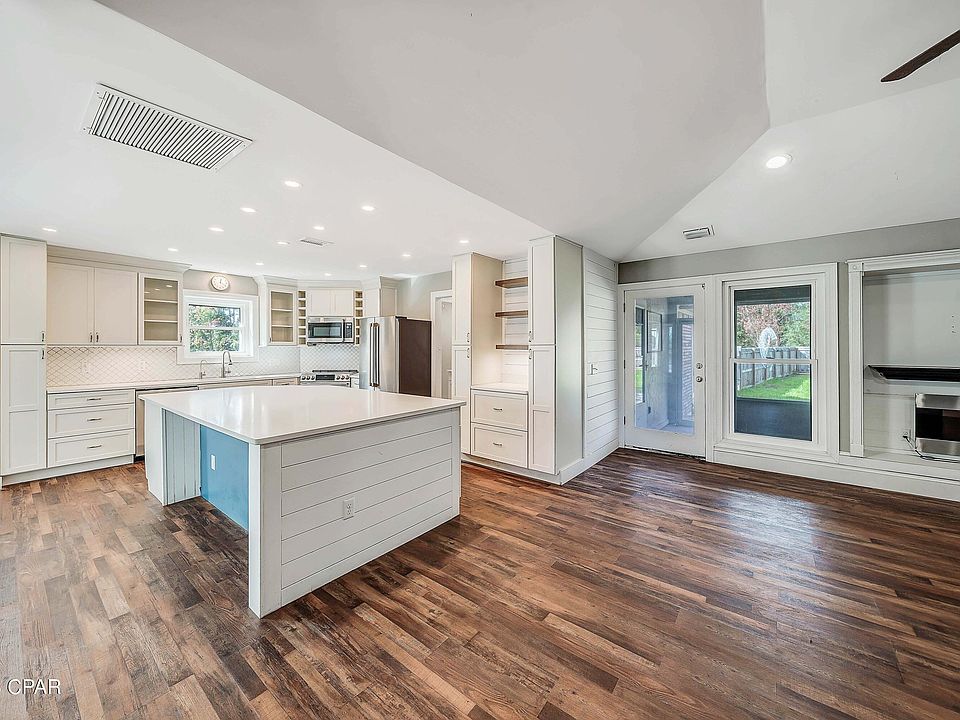 All brick home, large corner lot, 3 car garage, remodeled inside, new windows and new roof! Almost half acre lot! No HOA fees! Features a welcoming open floor plan with LVP flooring throughout, updated soft close cabinets in kitchen, baths, pantry and laundry room, quartz countertops and expansive island in kitchen, GE Cafe appliances, ship lap accents, a fabulous master closet and more. Enjoy a porch off your living room that leads to a spacious fenced in backyard, and plenty of room for a pool. Located in the neighborhood of Shoreline Estates, you will love your oversized lot situated in a tucked away location, while also close to Tyndall Air Force Base and the heart of Panama City. Also convenient are boating opportunities and the white sandy beaches of Panama City Beach. Call today to see this great home!