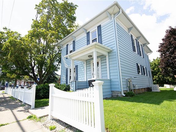 Village home with so much to offer and plenty of functional space - 2180 Sq. Ft. Beautiful original woodwork, Oak hardwood floors and the DR glass chandelier will draw your attention as you tour this 5 Bedroom home which has a separate DR, a LR and Family Room plus a Master Bedroom located on the 1st floor w/1/2 bath. There is a second staircase off the kitchen which leads to a back bedroom that has a large wash sink, washer and dryer, 4 other nice size bedrooms and a full bath upstairs. New electric including underground wiring to the home, On Demand Generator, energy efficient combination boiler for heat and hot water, and a new roof are some recent upgrades this solid home has had. Extra storage in the dry basement and 2-car garage. The attractive property has a picket fence, paved drive w/turnaround, and mature trees. Quality craftsmanship went into this home making it one that will enjoy coming back to for many years located with several amenities close by including a park/playground, stores - local shops and restaurants as well as the amazing St. Lawrence River.