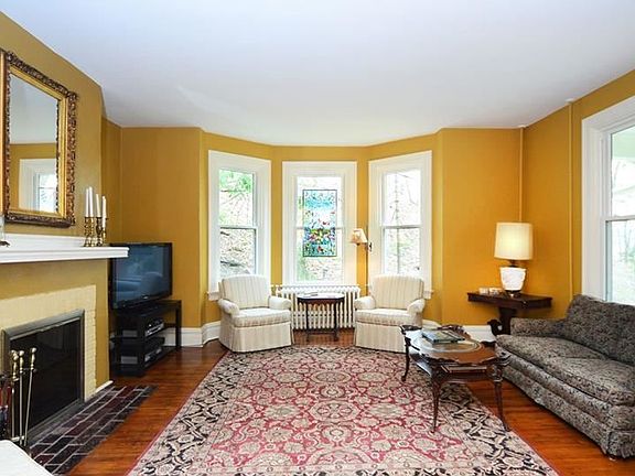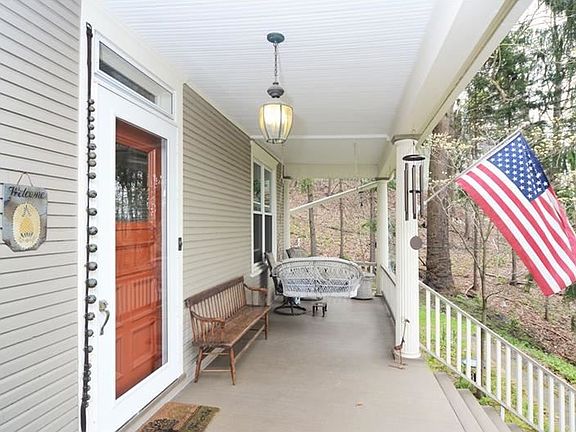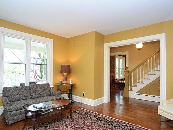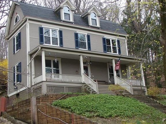 Stately 3 bedroom Victorian home situated on a picturesque wooded lot. Enjoy seasonal views with this homes front porch. Main level includes dining room with French doors to secluded back patio, living room with bay window area and decorative fireplace, hallway with coat closet and gorgeous staircase, eat-in-kitchen with side door to covered porch. Second level includes 2 large bedroom,a den and hallway full bath. The third level of the home has 3rd bedroom with an 11x11 bonus room. The owners have made much appreciated updates that enhance the beauty of this home: insulation, newer windows, kinetico water filtering system, newer storm doors, created a driveway, retaining walls, service door from driveway to basement, back patio, refinished flooring, finished third level of home and much more.
