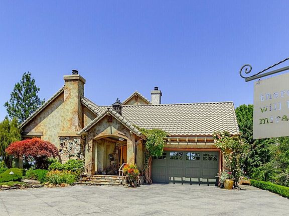 This exquisite estate property exceeds expectations& at a great price! Perched atop a knoll, the 14.44 acre parcel has unsurpassed panoramic views. The quality of craftsmanship is extraordinary, with elegant interior & exterior finishes, open & spacious floorplan designed for views & gracious living. Custom features abound such as hardwood floors with cherry inlay, French doors with art glass to main level primary suite, luxury bathroom features including soaking tub, steam shower, double vanity, dressing room closet & laundry. Quality features include box beam ceilings, gas fireplaces in living & family rooms, clerestory ceiling above dining nook, gourmet kitchen with 6 burner Wolf Gas Cooktop, upscale Stainless double oven, custom farm sink, granite counters and handmade tile backsplash. Copper gutters, tile roof, multiple courtyards with private nooks, all adorned by meticulous established landscape are just a few of the many amenities of this exceptional property.
