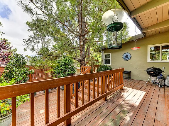 High in a forested residential area overlooking Monterey Bay, this home has a welcoming vibe from the moment you open the front door. The sky lit living room, decorated in warm Earth tones, features a sectional, two leather swivel chairs, large TV, fireplace, and a Yamaha piano. Sliding doors lead outside to a multi-level deck and a private fenced yard with ferns, azaleas, roses and trumpet vines. The kitchen has brick-colored concrete countertops, a four-burner gas range, maple cabinets, stainless appliances, and a Spanish tile backsplash. The dining table (with an extra leaf) seats 6-8. Steps up from the living room there's a full bath with a small tub/shower and a hand painted vessel sink. Across the hall, a den with a convertible desk/wall bed overlooks the living room (with a pulldown blind for visual privacy). The master, decorated in a soothing shade of blue, has a small, modern en suite bath with a white tiled shower and a vessel sink. The third guest room, across the hall, has a sleeper sofa and a large TV. With easy access to Highway One and 68, this home is perfect for commuters and close to everything on the Monterey Peninsula Available until January 2021, no utilities included. Contact us to schedule a showing.
