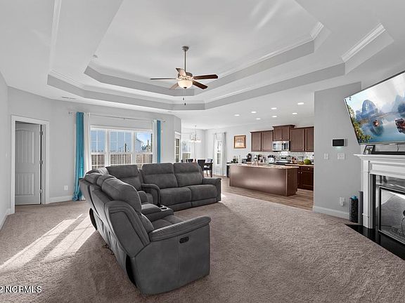 Welcome to Oyster Landing and this 1-year-old Ashby with Bonus built by A. Sydes Construction! Come in from the covered front porch and explore all the open living space to one side while the bedrooms are all kept separate on the other. The large living room has a gorgeous tray ceiling and a corner electric fireplace. This gives on to the kitchen with a nice pantry and a separate dining area. The primary suite also boasts a lovely tray ceiling and spacious walk in closet while the primary bath has a separate soaking tub from the shower and dual sinks in the vanity. Bedrooms 2 and 3 are generously sized and share a lovely full bath. This Home also comes with a bonus room upstairs! Relax outside in the private fenced-in backyard!