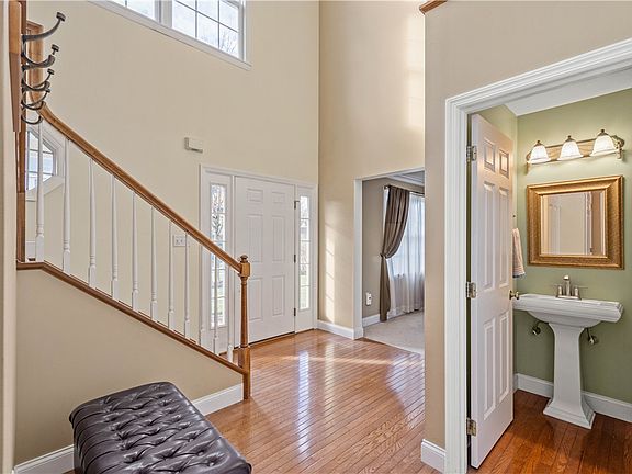 Wonderful location in Treesdale on a cul-de-sac street! 2 Story hardwood foyer welcomes you to this easy flow floor plan. Open Kitchen/familyroom with wood cabinets & granite counters. Newer stainless appliances including refrigerator 2022, convection stove 2020, microwave 2019. HVAC new 2018. New Roof, upgraded siding, gutters, outdoor lighting fixtures & some windows 2019. Walk out from kitchen to large deck overlooking level to gently sloping rear yard backing to wooded privacy. Master suite features tray ceiling and whirlpool bath. Abundant walk-in storage through guest bedroom! Finished lower level gameroom complete with powder room, walks out to rear yard. Level driveway. Walking distance to Treesdale Community Center (swimming, tennis, ball fields and more) and easy walk to Pine Community Park w/sand volleyball, bocci, summertime Farmers Market and more. Living room is being used as the den. The gameroom is L shaped, "additional room" in LL is the rear part of the gameroom