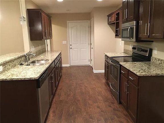Beautiful home with hardwood floors in living area and master, granite counter tops in kitchen and baths, custom cabinets, stainless appliances, can lights, vaulted ceilings, garden tub in master bath, covered porch and fence.