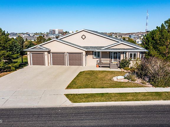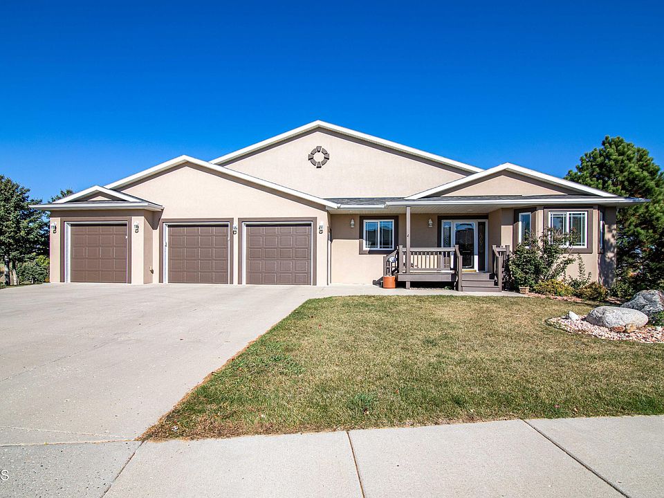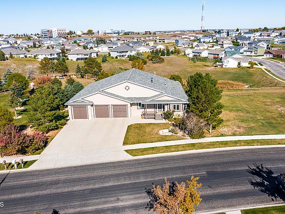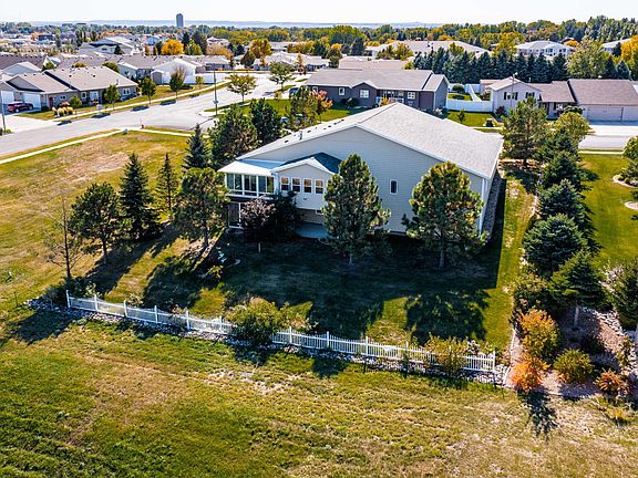 Beautiful 4 bedroom, 4 bathroom, ranch-style home in north Bismarck that features three sunrooms, main floor laundry, beautiful custom cabinetry and countertops, double-oven, walkout basement, geothermal heating, and a 2030 square foot garage with poly-chip floor and three separate hobby rooms. This home has a south-facing office/den immediately off of the front door, which could serve as an additional bedroom or dining room and has two gas fireplaces; one each on the main floor and basement. The primary bedroom suite features a walk-in tub and a large walk-in closet, and the basement has a large den in addition to the open family room. You don't want to miss this spacious custom-built home. Call for a showing, today! Agent is related to Seller.