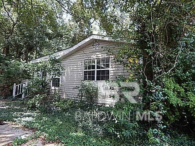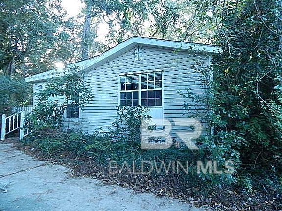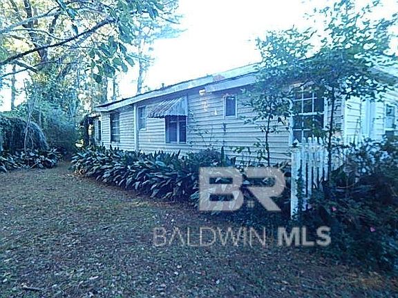 One story vinyl sided cottage. Lovely Triangle Corner lot. 223' Road frontage. Many trees. Home is in need of total renovation or start from the ground. Great potential. Close to town and Mobile Bay. Subject to Alabama Right of Redemption Laws. Buyer to verify all information during due diligence.