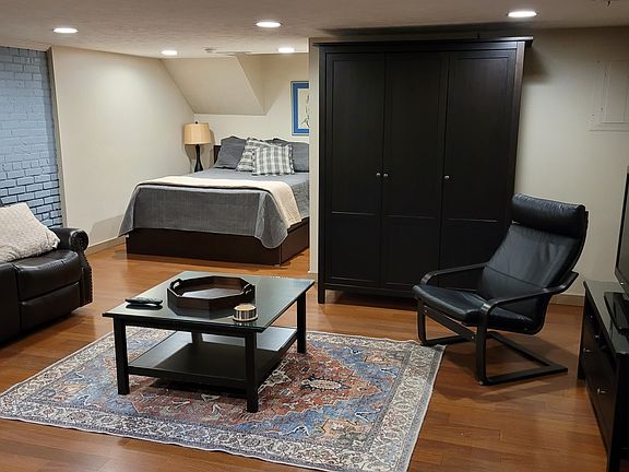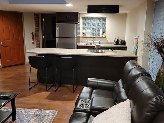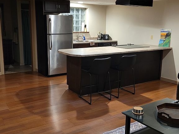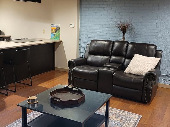 Moving to Hastings? Or just in town for work? Skip the hotel and stay in our funky studio apartment located in the heart of downtown Hastings. This main floor, 520 sq. ft. studio is completely furnished so all you have to do is bring your food and clothes. This unit features, a full kitchen with stainless steel appliances, island seating, stack washer/dryer in unit, queen platform bed, wood and tile flooring, clothing wardrobe, dresser drawers, 40" HDTV, Blu-Ray player, ALLO TV and wireless internet. All linens, towels, dishware, silverware, glassware, cookware, small appliances, utilities and a cleaning service every two weeks are included. All inclusive rates are $1,550 per month. This unit is fully furnished and all inclusive. All utilities, internet and twice per month cleaning is included in the monthly rent.