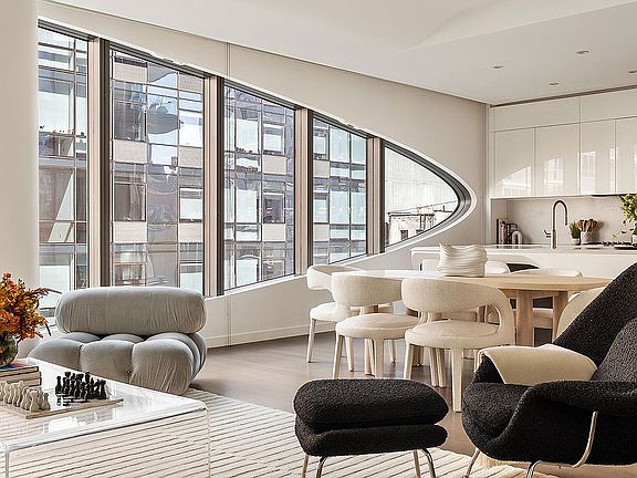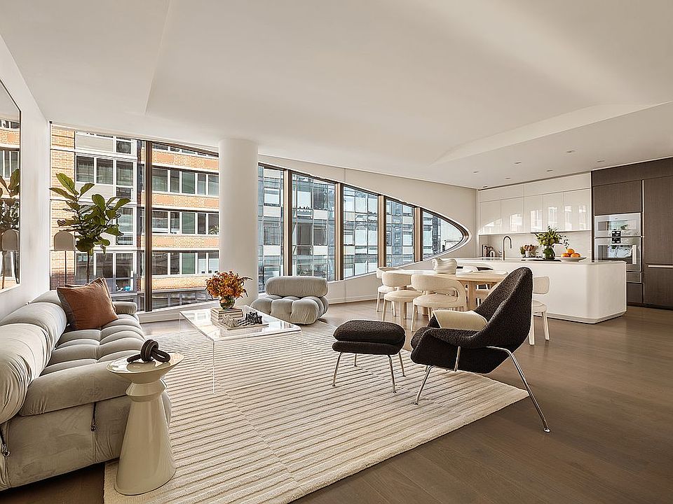 Residence 18 at Zaha Hadid’s 520 West 28th Street is a 2-bedroom, 2.5-bathroom home with nearly 50 feet of floor-to-ceiling motorized windows and the distinction of being the only apartment on its floor, ensuring extreme privacy and discretion.