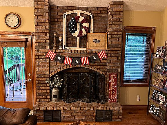 Spectacular all brick home with limestone accents built in 2008. Quality throughout! Pella windows, hard wood floors, 6 panel solid oak doors, oak trim, tray ceilings and more! Granite counter tops, stainless steel appliances and beautiful cabinetry in the spacious eat in kitchen. Adjacent to the kitchen is a formal dining room with hard wood floors with cherry inlay. New Aire fireplace ducted in the central heating system to lower heating costs this winter. The master bedroom is fabulous with a huge walk in closet with built in shelving and drawers. Located on main floor office with built in cabinets. Main floor laundry off the garage. The basement has a spacious family room with a bar area, 2 large bedrooms, both with walk-in closets, one with its own bathroom! A 2nd bathroom and laundry room is in the basement, as well as a storm shelter. Located in Lebo just 20 minutes from Emporia.