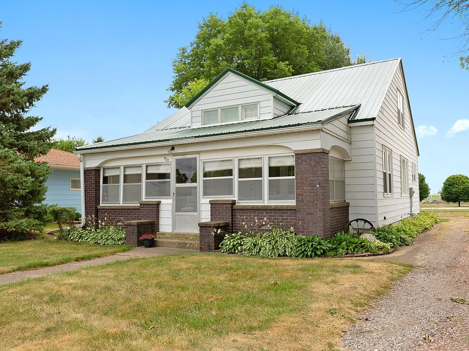 Small town living at its best. This charming home has the room to spread out. On the main level you will find a formal dining room / living room, two large bedrooms, full bath, kitchen and mudroom. Upstairs 2 more large bedrooms, a 2nd bathroom, plus a bonus room perfect for a child's playroom or home office. Beautiful original hardwood floors lay waiting underneath the carpeting. Other features include; updated windows, attached tandem garage, maintenance free outside with a metal roof and steel siding. A lovely patio area leads out to the inviting back yard with many perennials that will provide beauty for years to come. Schedule your showing today!