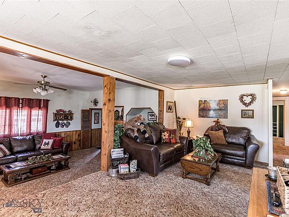 Wonderful home in upper Ennis with 3BR/1.5 Baths. Close to post office, schools and downtown Ennis. This wonderfully neat and tidy property is ready to go with new refrigerator, new propane range, new forced air furnace and new outlets and wiring checked by a licensed electrician. Original 1972 manufactured was added on to providing 1874SF to enjoy and includes a sunroom, extra living room with wood stove, separate mudroom entrance, laundry room, wood storage, and a pergola covered patio overlooking a fenced green yard with trees. Park two cars in the detached garage that is connected to the large shop with a wood stove. Also has fiber optics!