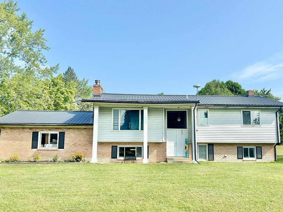 Country Charm Meets Modern Comfort in Edmore! Nestled on a spacious corner lot on the edge of town, this 4-bedroom, 2-bathroom home offers the perfect blend of rural tranquility and urban convenience. Inside, you'll find a welcoming living area adorned with a charming brick fireplace, creating a cozy and inviting atmosphere. Upstairs, the spacious family room features a sliding door that leads to a delightful deck, ideal for enjoying the fresh air and entertaining. Spacious yard offers ample room for outdoor activities and relaxation. The fenced-in play area is ideal for children and pets to roam freely.