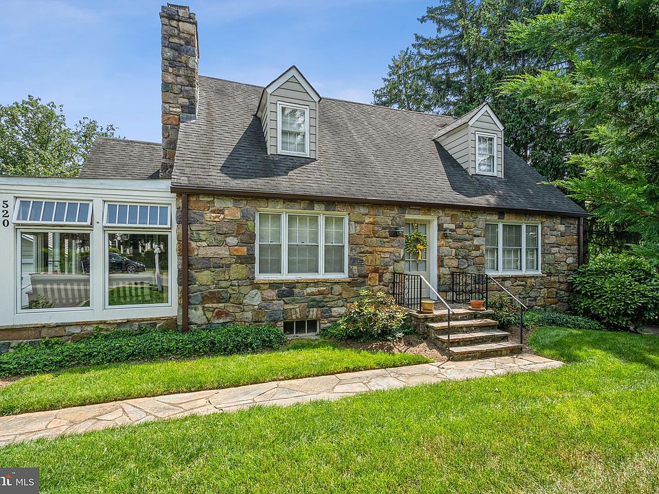 Spectacular, freshly renovated 1957 Stone Cape Cod. Perfect blend of contemporary features and conveniences with historic quality craftsmanship and charm. Immediately upon crossing the threshold, the traditional floor plan welcomes you to a generous living room warmed by a stone wood-burning fireplace. The separate dining room allows tables to expand into the family room when entertaining. The captivating kitchen design and decor dazzles while being at the ready to satisfy the seasoned chef. Or, retreat to the cozy 3-season sun room. The ample 1st floor master suite ensures privacy from other bedrooms, and accommodates all life styles. Two sizable bedrooms upstairs serviced by one full bath. Unbelievable finished basement boasts stone walls, stone wood-burning fireplace, and half bath; with laundry and workshop areas. Walk-out to the most incredible huge level back yard perfect for activities. All conveniently serviced by a brilliant circular driveway providing smooth ingress and egress. Please watch the virtual tour, this home is so beautiful.