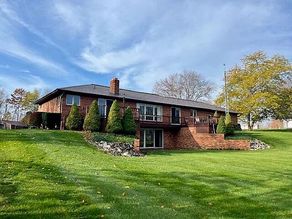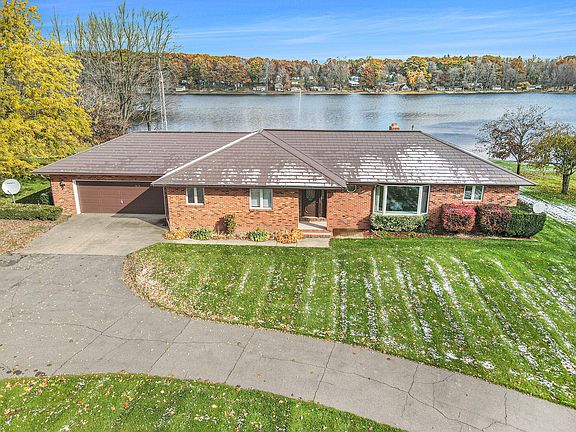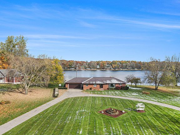 BEAUTIFUL BRICK WATERFRONT HOME! This unique property includes 221 feet of private St. Mary's Lake frontage and 3.81 acres of land. The main level includes a primary bedroom with private bath, large living room with wood fireplace and sliding doors to the recently stained deck. Main floor laundry, full bath and office area which could be converted to a bedroom. The lower level walkout includes a family room with wet bar, fireplace, 2 bedrooms, full bath and storage area. Other amenities include a 2 car attached garage, geothermal heat/air conditioning, central vacuum, metal roof and a 32 x 40 pole barn along with a RV shelter. The views from the upper and lower level are breathtaking. A 113 acre lake for fishing & water sports. Enjoy year around in this piece of heaven!