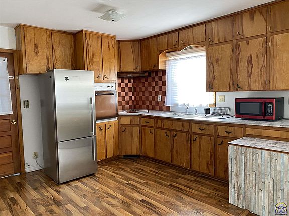 This move-in ready home is located just one block west of the City Lake and Park in New Strawn. Living room boasts large windows for natural light and original hardwood floors throughout the living room, hallway and bedrooms! There is a bonus room off the utility room that would make a great home office or craft room! Washer, Dryer and kitchen appliances are included. Single car attached garage with newer garage door and opener. One year home warranty included! Don't wait, call today to see this home!