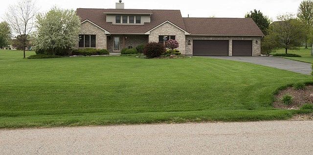 Stunning 4 bedroom, 3 bath all brick home with 3 1/2 car garage on 0.8 acres. Large custom kitchen with Corian coutertops, cherry cabinets, stainless steel appliances and large center island with stainless steel hood over gas cooktop with seating. The open floor plan has a two sided gas fireplace with ceramic tile and hardwood floors. Jacuzzi tub, dual shower heads and two vanities in a large master bath with attached walk-in closet with laundry. Fully finished basement with huge recreation/workout area and family room. This house is wired for connectivity with in-ceiling speakers, internet and cable connections in most rooms