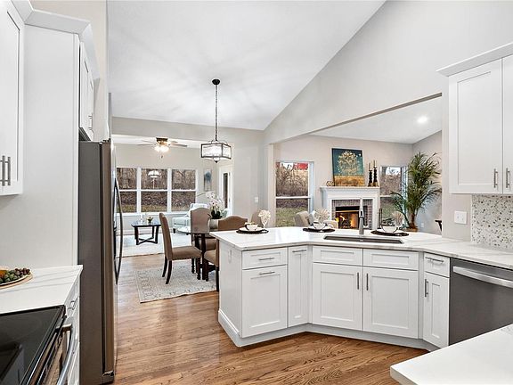 Beautiful Renovation just completed! New Paint Throughout. New Kitchen Soft Close Custom Cabinets, New Quartz Countertops, Stainless Appliances, Blanco Sink, New Tile Backsplash, New Hardwood Floors & 5 in baseboards. Kitchen has breakfast room that flows into Sun Room! Vaulted Great Room with Wood Floors and Gas Fireplace, New Recessed Lighting. Vaulted Dining Room can be used for dining or home office. Main Floor Master with Walk in Closet, New Flooring and Gorgeous Updated Bath w/New Freestanding Soaking Tub, New His & Her's Adult Height Vanities, New Floors. Divided Floor Plan with two additional bedrooms and Updated Full Bath. 3 Car oversized garage with private entrance to lower level. Main Floor Laundry. Backyard backs to trees with spacious patio. Sprinkler System, 9 ft. ceilings on main and Newer HVAC. Francis Howell Schools! Close access to major highways & shopping. Must See! Move in Ready! Additional Rooms: Sun Room